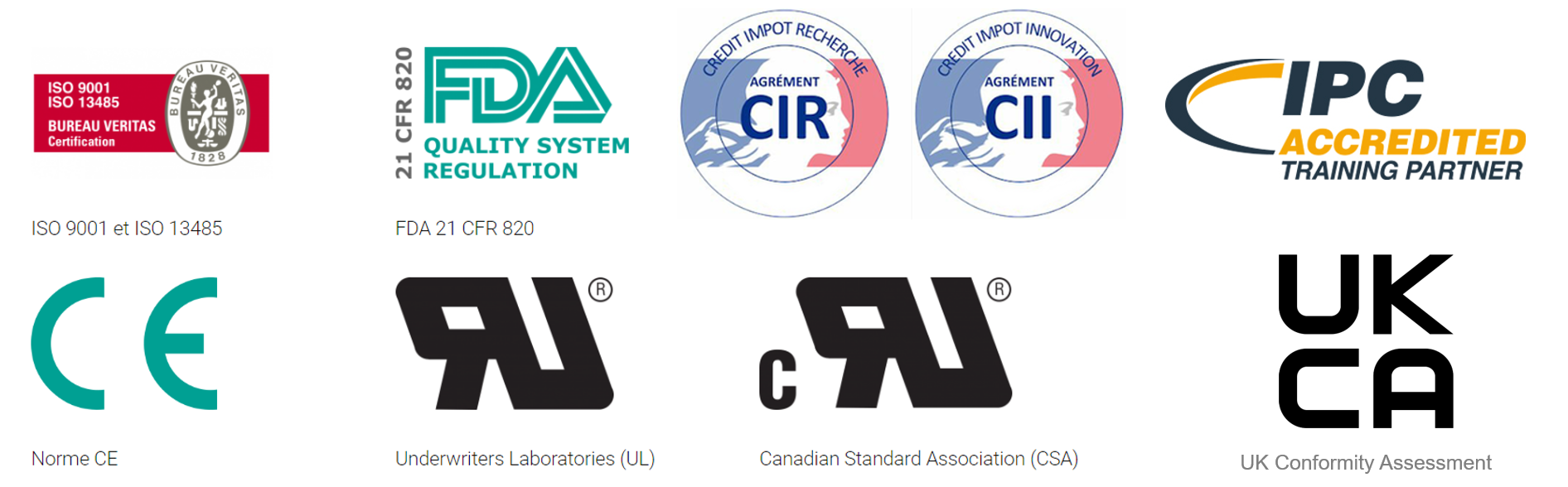 Certifiée ISO 13 485, la société MAATEL dispose d’une forte expérience dans le développement et la production en série de dispositifs médicaux électroniques pour le compte de ses clients, fabricants de DM de classe I à III, DMIA et DMDIV.