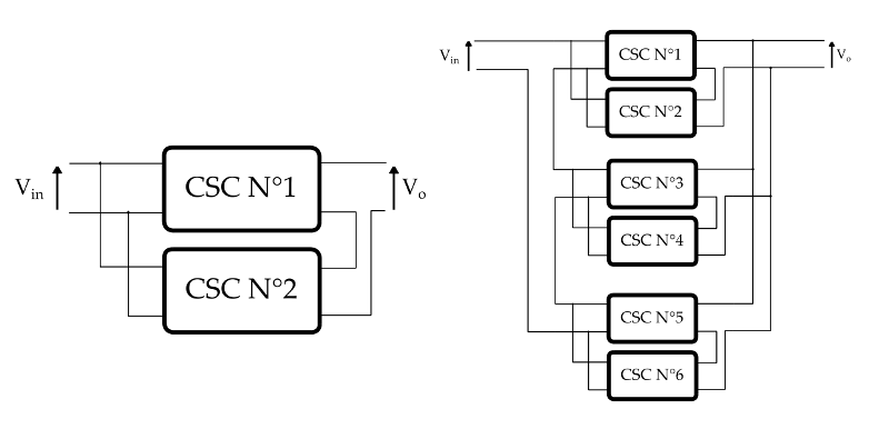 L’étage de puissance est une interconnexion de « Cellules Standards de Conversion » CSCs dans une configuration donnée (série ou parallèle | entrée et sortie). Cette partie présente l’interconnexion théorique de CSCs.